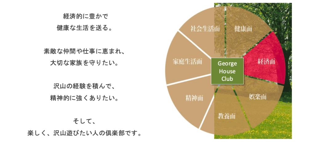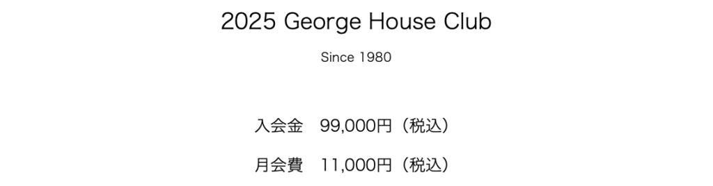 一人ではできないことも みんなが集まれば可能になる そんな楽しい倶楽部 作りました! George House Clubとは 選ばれる理由 「一人では難しいことも、みんなと一緒ならきっとできる」──そんな想いを大切にしながら、手頃な価格で楽しめる贅沢な体験や、暮らしを豊かにする多彩なサービスを通じて、会員同士のつながりや成長を自然に育んでいます。 Point 01 リゾート会員権はもういらない Resort Membership 数十万円するスイートルームのようなお部屋も数万円で宿泊できます。入会するのに高価な費用が必要なリゾート会員券。毎年リゾート会員専用の豪華ホテルに、抽選ですが宿泊する事が可能になりました。 申し込み Point 02 スペシャル海外旅行企画 International Travel 毎年抽選で、激安海外旅行に行くチャンスがあります。「今年も開催!夢の激安海外旅行、抽選であなたに当たる!」憧れの海外が手の届くチャンス!非日常の体験をあなたにもお届けします。 申し込み Point 03 沖縄の高級リゾート宿泊券も当たります Okinawa Luxury Resort Voucher 沖縄の高級リゾート内にあるコンドミニアムの宿泊券をプレゼント!「今年も開催!夢の激安海外旅行、抽選であなたに当たる!」憧れの海外が手の届くチャンス。非日常の体験をあなたにもお届けします。 申し込み サービス ジョージハウスクラブでは旅行イベント以外にもグルメから生活にまつわる様々なサービスを提供しております。 健康支援サービス 健康は大切な財産 気にかけることで助かる命もあります。「健康の環境作り」が私たちのテーマです。 詳しくはこちら ワンランクアッププログラム 学びの環境を提供 年間を通して各界のプロフェッショナルによる様々なセミナーや勉強会を開催します。 詳しくはこちら ビジネスマッチングシステム 人生100年時代に セカンドジョブは当たり前の時代に。ニーズに合わせた会員同士のマッチングを提供。 詳しくはこちら セレクタリサービス 時間は大きな財産 皆様の大切な時間を有効に活用するため、様々な代行サービスを提供しています。 詳しくはこちら プライス